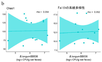 | 3.3. 消化を生き延びた B. longum BB536 菌の数と糞便微生物叢の多様性との相関関係 |